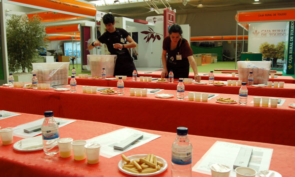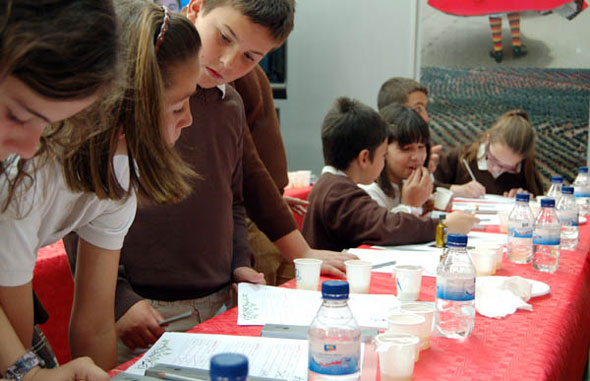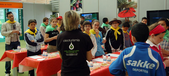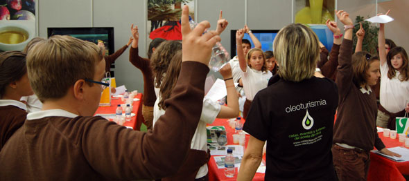 El viernes 23 de abril pudimos disfrutar del encuentro con 150 alumnos de distintos colegios de la localidad de Mora (Toledo). Divididos en tres grupos y tras mostrarles las diferencias entre el aceite de oliva y el aceite de oliva virgen extra, tenían que descubrir cuál era el aceite infiltrado. Les dimos pistas sobre los frutados que podían encontrar, el grado de amargor y picor para que, a través de la cata y de su consiguiente ficha, lograran descubrir en qué vaso se encontraba el aceite de oliva. Los tres grupos estuvieron muy atentos a todas las explicaciones y lograron el título que Don Gota otorga a los/las catadores/as que descubren el aceite que no es virgen extra.