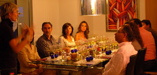 El pasado 24 de julio Oleoturismia organizó en Madrid un Curso de Cata a domicilio y una posterior cena de maridaje. Los aceites protagonistas de la noche fueron «Escornalbou» de la Denominación de Origen Siurana (Tarragona), «Mantua Carpetana», aceite madrileño de la variedad cornicabra, «Gota Verde» de «I loves aceite», empresa revolucionaria en Jaén con su nuevo concepto del aceite de variedad Picual. Con estos aceites se elaboraron posteriormente una serie de platos para que, además de la cata, se pudiera comprobar el perfil tan diferente que puede tener un plato si se utiliza una variedad u otra.