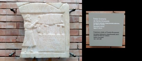 Si vais a Mérida, joya arqueológica de España, hay una visita obligada: El Museo Nacional de Arte Romano. Quiero enseñaros este pedacito de historia donde queda remarcado el «amor» que tenemos al vino desde antiguo. Es un resto de una estela funeraria.