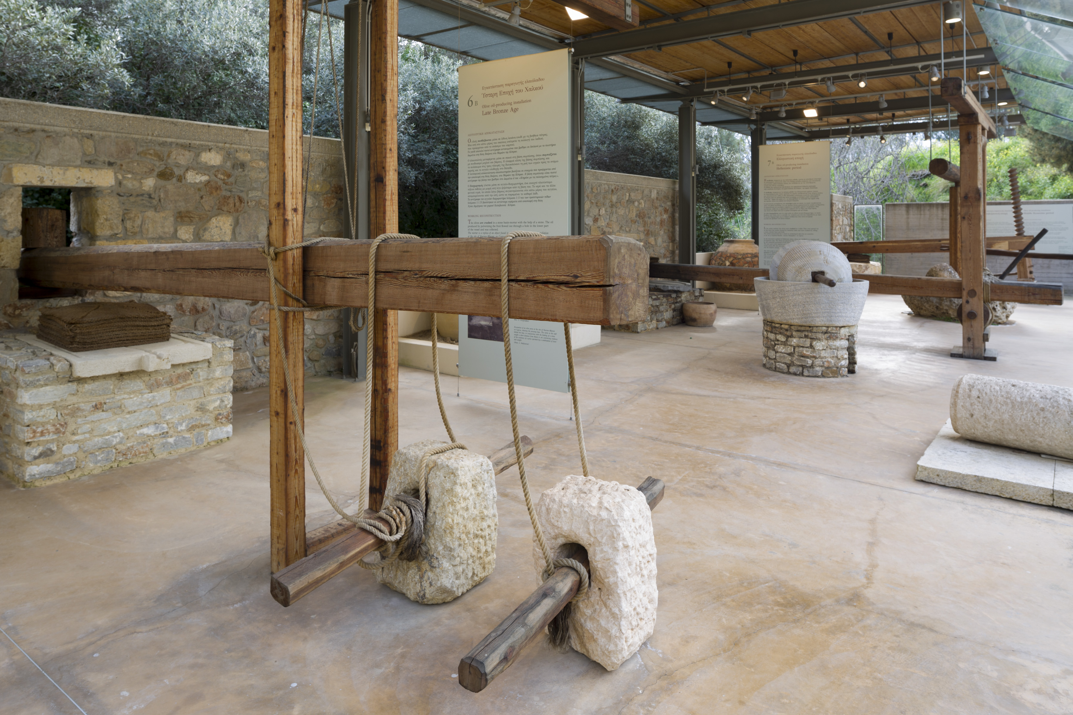 La visita del museo continúa con la exposición al aire libre, que se refiere al cultivo del olivo y la recolección de las aceitunas. Comprende réplicas exactas de varios tipos de prensas de aceituna que datan de la Antigüedad. De hecho, uno de estos se pone en marcha en el contexto de programas educativos para grupos escolares.