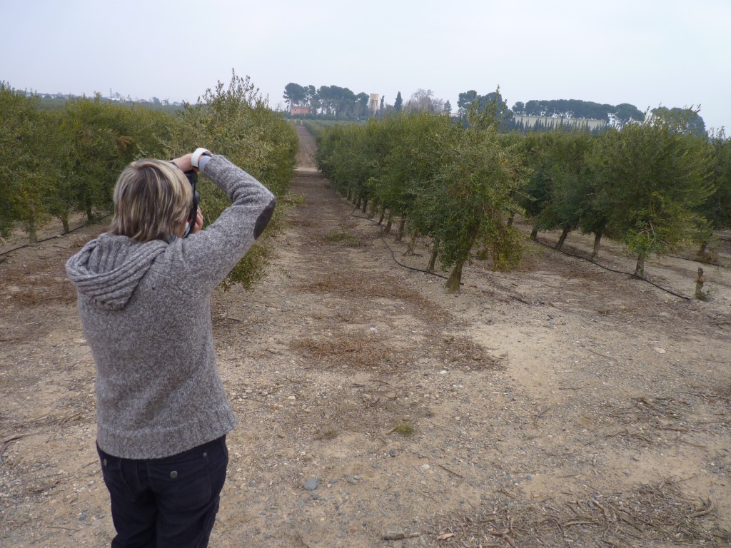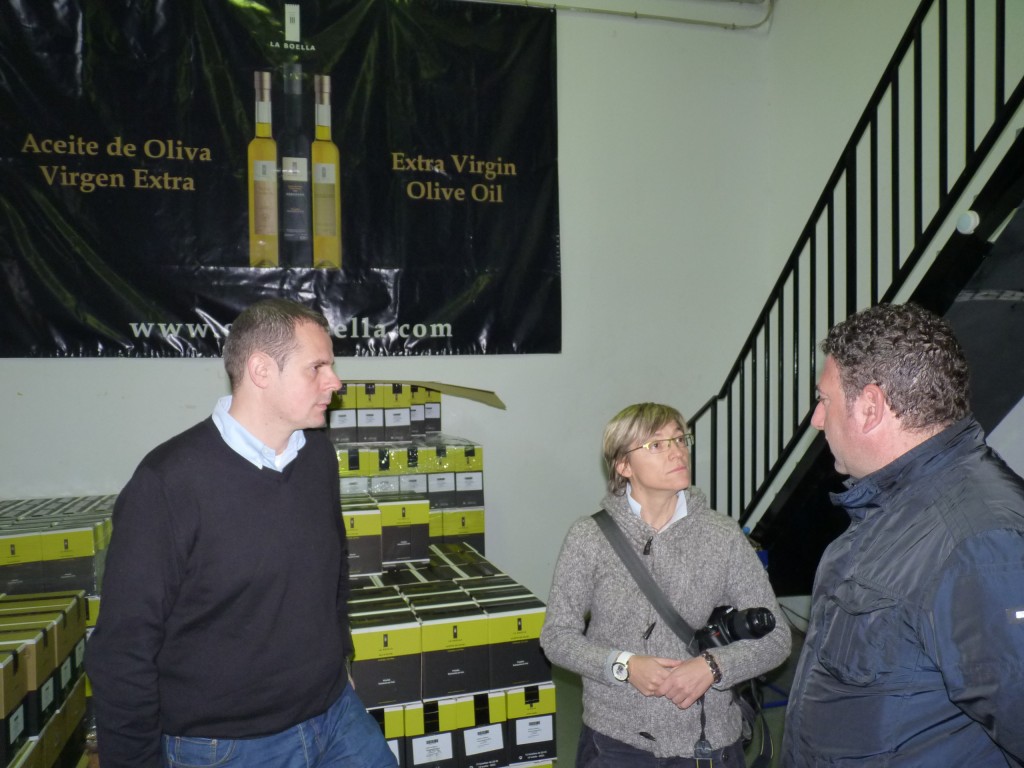 Durante más de una hora, estuvimos visitando el Molino, así como escuchando atentamente las explicaciones que Pep nos estuvo dando. Un pozo de sabiduría y vivencias de uno de los técnicos con más prestigio del sector, pionero del cultivo intensivo y recuperación de variedades autóctonas, como es la Arbosana, todo un referente que ha animado a muchos oleicultores apostar por esta variedad. Nos despedimos de Pep Baiges, agradeciendo su «clase magistral», para acto seguido recorrer en coche y a pie los caminos y las hileras de los alrededores de las 100 ha plantadas con unas 150.000 olivos, en las que predomina con un 90% la arbequina, y el resto entre arbosana y koroneiki.