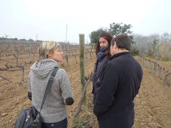 Nos acercamos a las viñas para ver las variedades allí plantadas (la mayor parte ya podadas y todas emparradas). La Cabernet Sauvignom de 2003 junto a la bodega, llamada partida La Boella, fue la primera plantación (alrededor de una Ha). En 2004 es plantó 1 Ha. más de Cabernet Sauvignon y 2 Ha. de Monastrell, y el 2005 2 Ha. de Merlot, todas, en la partida Antigons (lugar de asentamiento de una antigua necrópolis romana), al otro lado de la riera de La Boella (lugar de ubicación del yacimiento de La Boella …).