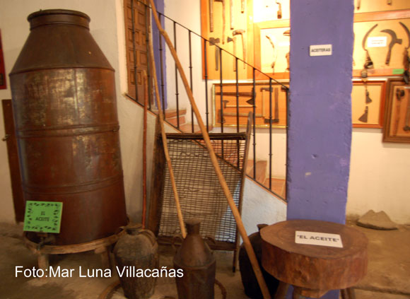 > Bodega vitivinícola. Apartado dedicado al aceite y sus herramientas.