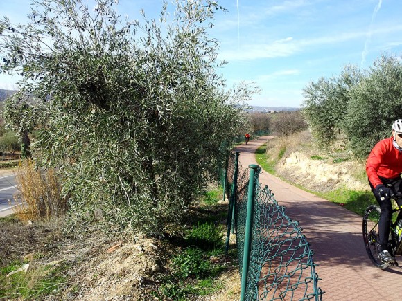 Comenzamos el recorrido en la localidad de Perales de Tajuña donde aparece perfectamente indicado todo el recorrido de la Vía Verde. El perfil del terreno es más llano que el tramo anterior y discurre entre las hermosas vegas y huertas del Tajuña. Aquí las «manchas» de olivar son más pequeñas pero de una gran belleza pues se pueden contemplar ejemplares de gran porte.