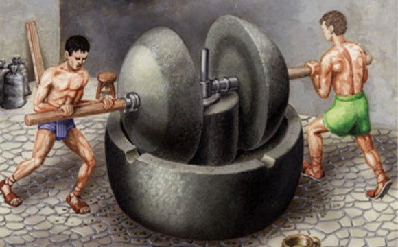 Reproducción de un trapetum romano que guarda un gran parecido con el descubierto en Los Villaricos