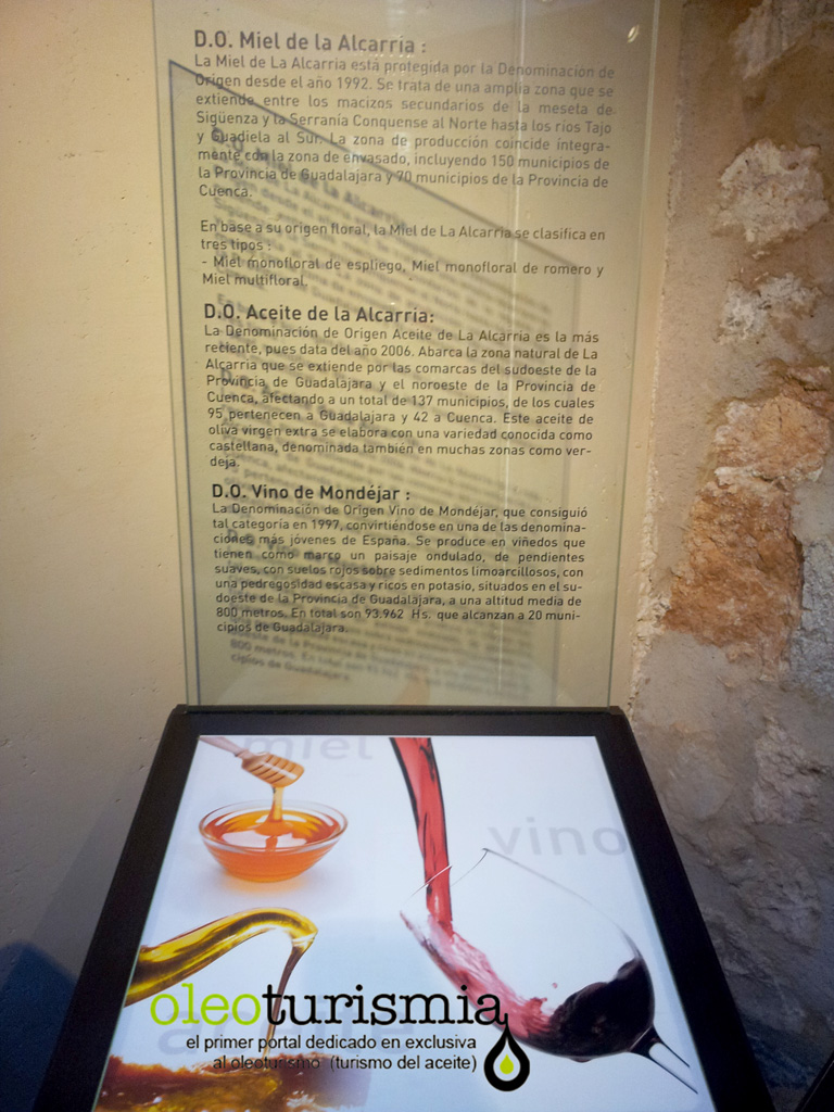 En el Castillo hay un apartado dedicado a la gastronomía de La Alcarria donde puede verse los Aceites de la D.O. Aceite de La Alcarria