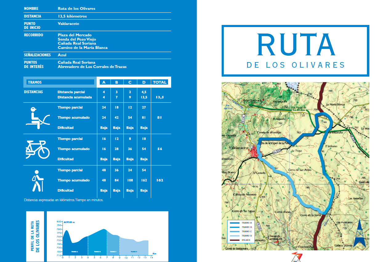 RUTA DE LOS OLIVARES: Su longitud es de 13,5 km dentro del municipio de Valdaracete, punto de inicio y final.A